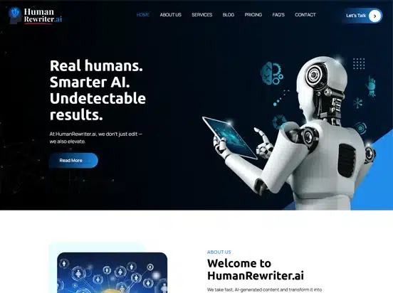 HumanRewriter.ai is a simple, WordPress-based site built to help entrepreneurs and content creators turn AI-generated drafts into polished, human-sounding writing that passes detection tools. The site highlights core services, client testimonials, and a clean, easy-to-navigate layout. It was designed as part of our larger content support system and connects directly to other brands in our portfolio. This project included brand development, logo design, and basic site setup to get the service ready for launch.