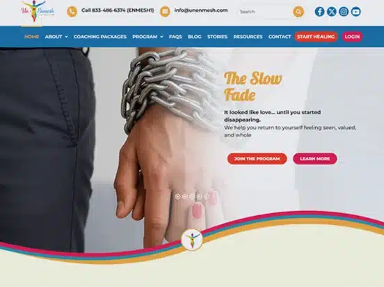 A calming, growth-centered coaching site that supports individuals breaking free from enmeshment and toxic relationships. This site features bold, expressive colors, structured content, and clear, supportive messaging. It was created as a premium WordPress site and offers healing resources for those who need a safe place to land and heal.