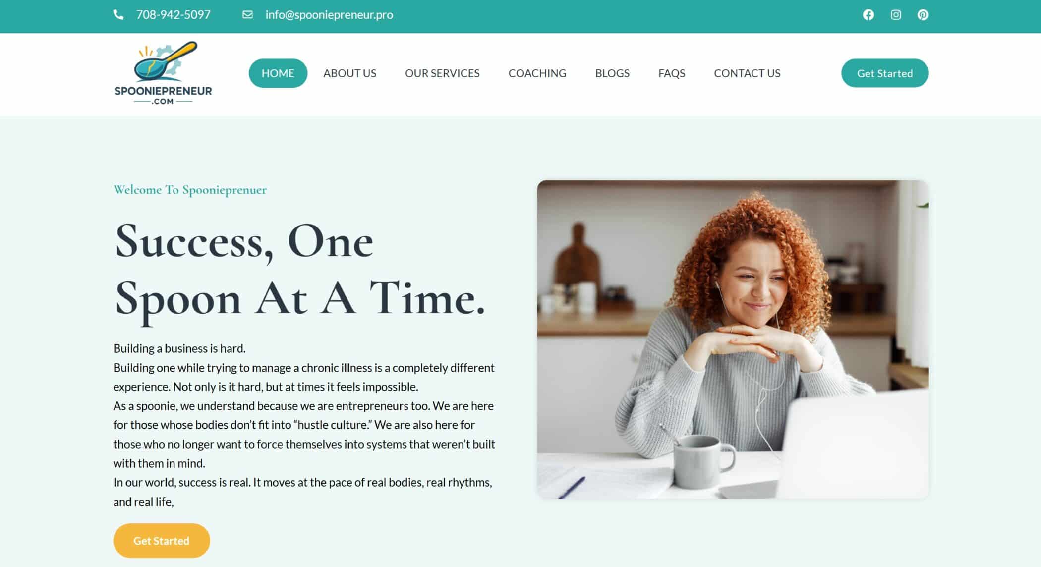 Spooniepreneur is a supportive, accessibility-minded brand created to help entrepreneurs living with chronic illness build businesses that honor their energy and their wellness. The site features warm, encouraging messaging, easy-to-digest resources, and a clean layout designed for low-spoon days. This project was built as a simple WordPress site with a gentle, uplifting brand identity, thoughtful content structure, and helpful tools for entrepreneurs who need sustainable, flexible pathways to grow.
